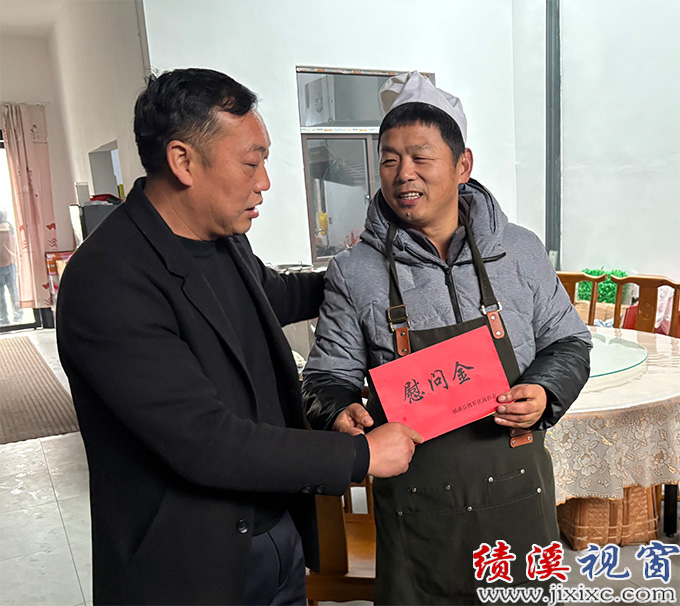 1月30日,绩溪县退役军人事务局党组成员、军供站站长高道全,绩溪县拥军优属协会党支部书记江来国、会长方向东,携手协会会员单位安徽盛利棉制品有限公司刘银红总经理一行开展拥军优属慰问活动。