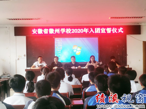 7月1日,在中国共产党成立99周年之际,安徽省徽州学校团委在二楼会议厅为40名新团员举行了入团宣誓仪式。出席仪式的有团县委书记邵崇、副校长何萍、政教处副主任盛继彪、校团委副书记高峰,仪式由校团委书记宋春轶主持。