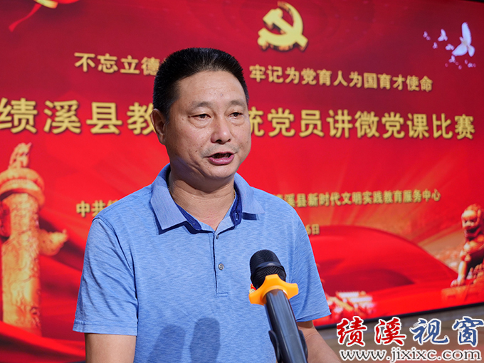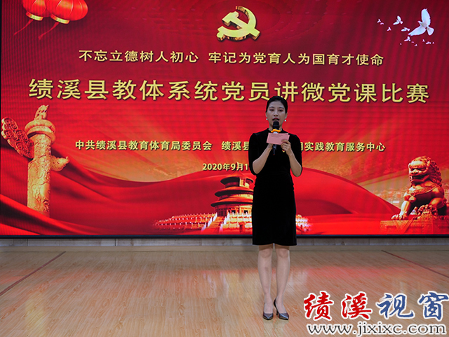 2020年9月16日,绩溪县教体局党委在扬之小学报告厅举办基层党组织“党员讲微党课”比赛,来自教体系统基层党组织的23名选手参加角逐。县教体局党委书记、局长程云广出席并致辞;县委宣传部副部长、县文联主席曹飞,县委党校高级讲师、省委讲师团基层宣讲专家汪顺华,县委组织部组织二科科长吴从青出席并担任大赛评委。