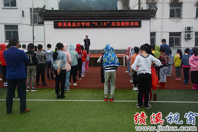9月18日,天空阴沉,细雨霏霏。下午1时25分许,一阵阵急促而尖厉的哨声警报在绩溪县金沙学校的校园突然响起,一时间,整个教学大楼立刻出现孩子们快速离位的脚步声,大家在老师的指导下,安全、迅速、有序地向指定的“安全区域”撤离,历时仅1分07秒。