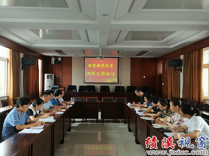 图为新学期开学伊始,该县教体局小学教研室组到实验小学调研指导课改