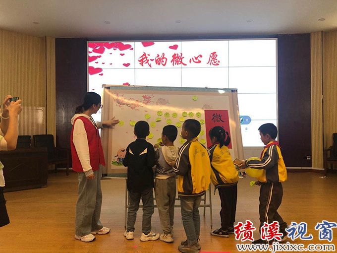 联欢会开始前,学校负责人给全校留守儿童送上了节日的祝福。学校心理咨询室的章老师根据留守儿童的心理特点,给同学们上了一堂精彩的心理辅导讲座,章老师从留守儿童常见的不良心理行为表现和如何培养自己的信心两个方面展开,讲解深入浅出,生动有趣,同学们积极举手发言,现场气氛活跃。学校民乐社团的同学以一首二胡古筝合奏《你笑起来真好看》送上了自己的祝福,祝愿留守儿童每天都能微笑;由学校少先队选送的经典诵读节目《笠翁对韵》曾荣获省级奖项,古色古香的诵读展示营造浓浓的书香氛围,深深吸引了在场的所有同学;407班的汪子涵同学独唱了一首《小溪,你去哪?》博得孩子们的阵阵掌声。游戏环节更是将联欢会推向气氛高潮,“双人背对运球”竞争激烈,“我演你猜”趣味十足,台下加油呐喊声不断。活动最后一项,孩子们纷纷写下自已的美好心愿,上台贴在在微心愿墙上。