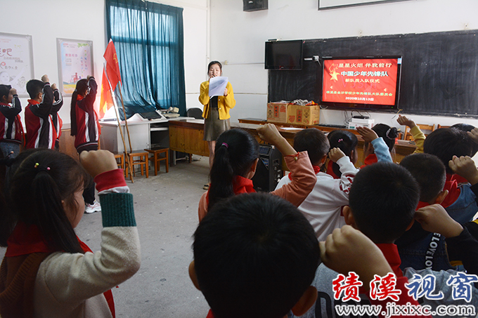 “我是中国少年先锋队队员,我在队旗下宣誓;我热爱中国共产党,热爱祖国,热爱人民,好好学习,好好锻炼……”鲜红的中国少年先锋队队旗前,17个小拳头同时举起,庄严宣誓,稚嫩而洪亮的声音回荡在校园的上空。