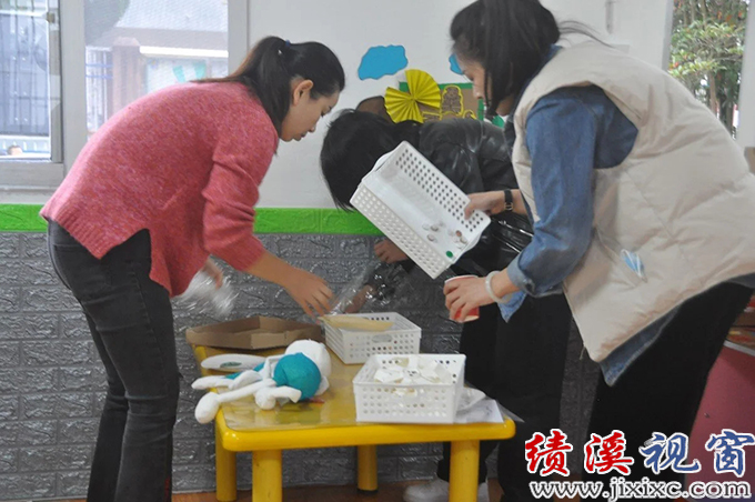 一到临溪,未歇息片刻,她们便与临溪镇幼儿园的老师一起忙碌起来:“家园驿站”、“家园直通车”中的一周计划、家长园地、温馨提示栏目,架构了家园互动的桥梁;主题墙“光盘行动”、“我是健康小卫士”,成了幼儿与生活对话的主阵地;区角丰富的材料,满足了幼儿活动和游戏的需要;走廊的吊饰更是别具一格,“十二生肖”、“二十四节气”、“中华传统节日”,将中国文化完美呈现在孩子们的眼中、植根于孩子们的心里……市二幼的老师们从区域设置、户外环境创设等方面对临溪镇中心幼儿园进行了全方位的指导和提升,该园面貌焕然一新。