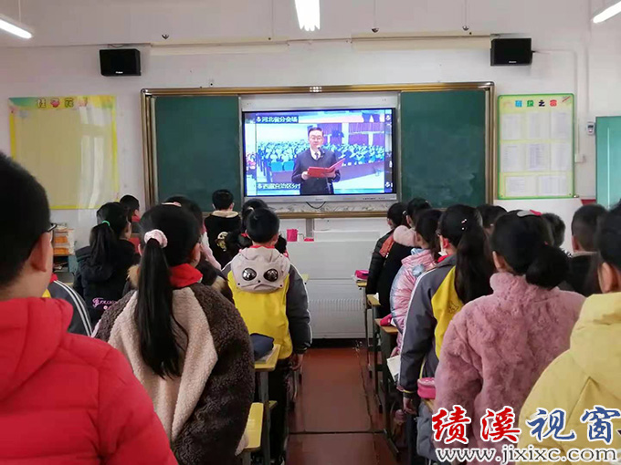 颁奖结束后,各班学生在教室里同步观看了教育部全国青少年普法网开展的“宪法晨读”网络直播。