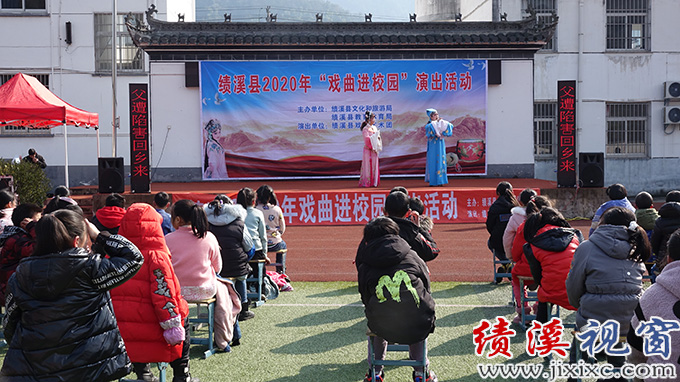 元月4日,冬日暖阳高照,舞台鼓乐铿锵。绩溪县“2020戏曲进校园”走进金沙学校,为该校师生送来一道鲜美的文化大餐。