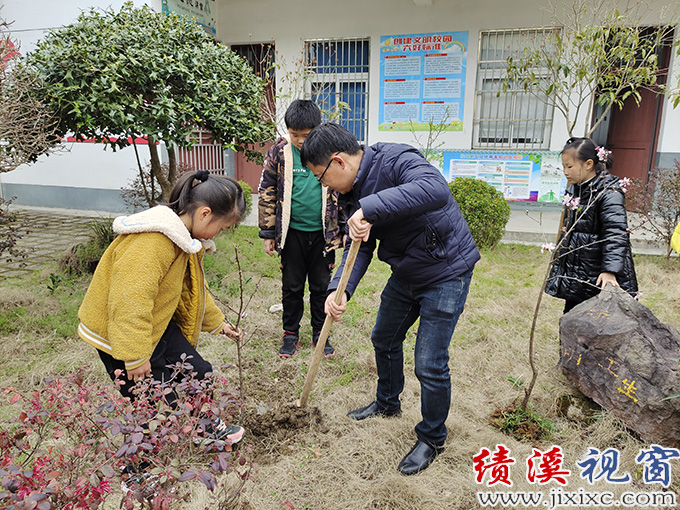 阳春三月,绿意盎然。在第43个植树节来临之际,绩溪县临溪中心小学各班在学校少先队的组织下,开展了植树种花美化校园的活动。