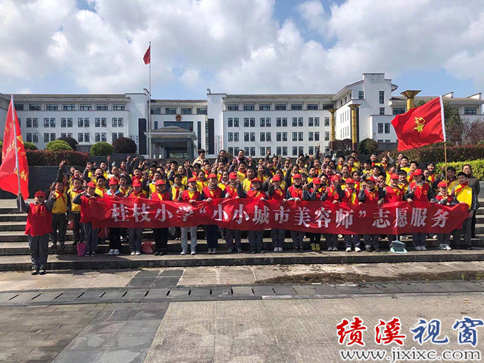 三月是学雷锋志愿服务月。12日下午,绩溪县桂枝小学五年级学生在正副班主任的带领下来到县政府广场开展了“我是小小城市美容师”志愿服务活动。