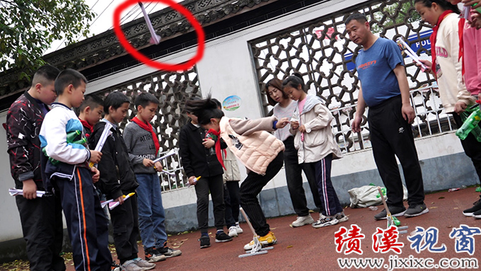 4月22日,绩溪县实验小学在“红心向党 童心追梦”为主题的第二十三届校园文化艺术节暨科技节上,科技实践活动——气火箭距离赛举行。